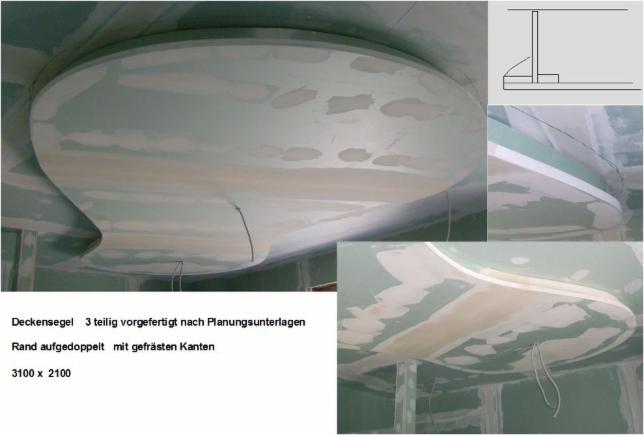 Deckensegel aus GK - Gipskarton Formteile für Lichtvouten